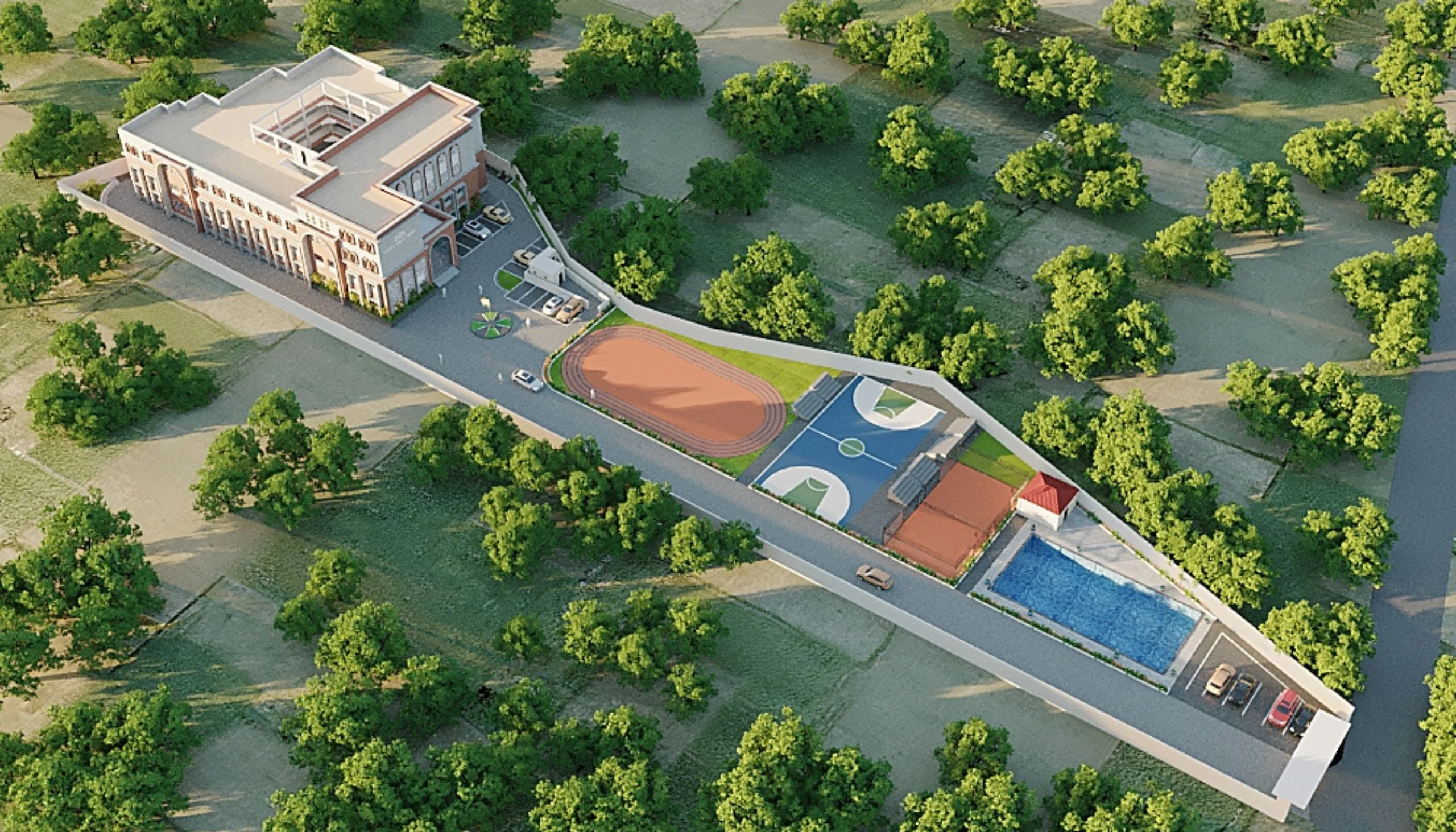 The running track offers students a dedicated space for athletics training, helping them build stamina, speed.